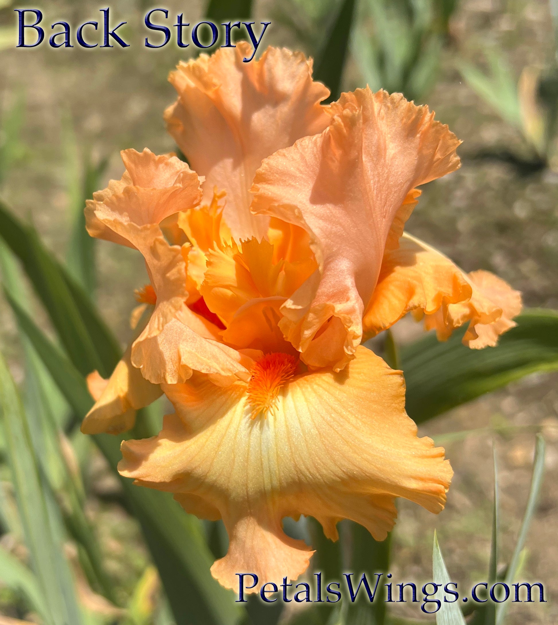 Awesome garden presence. Rich apricot-tangerine standards are nicely formed with heavy serration to the edges. Apricot-tangerine falls are blended citrus yellow beneath the tangerine-red beards. Extrememly vigorous with great bloom habits. slight  fragrance. Grows to 34 inches tall and blooms early season.