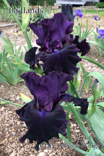 Wide ruffled petals, somber violet-purple hues and velvety texture. Discreet beards are highlighted by just a dash of white. Exceptionally vigorous bloom habit. Prolong your bloom season with 10-12 triple-socketed buds on 3-4 branches. Grows to 38" and blooms early mid and late season.