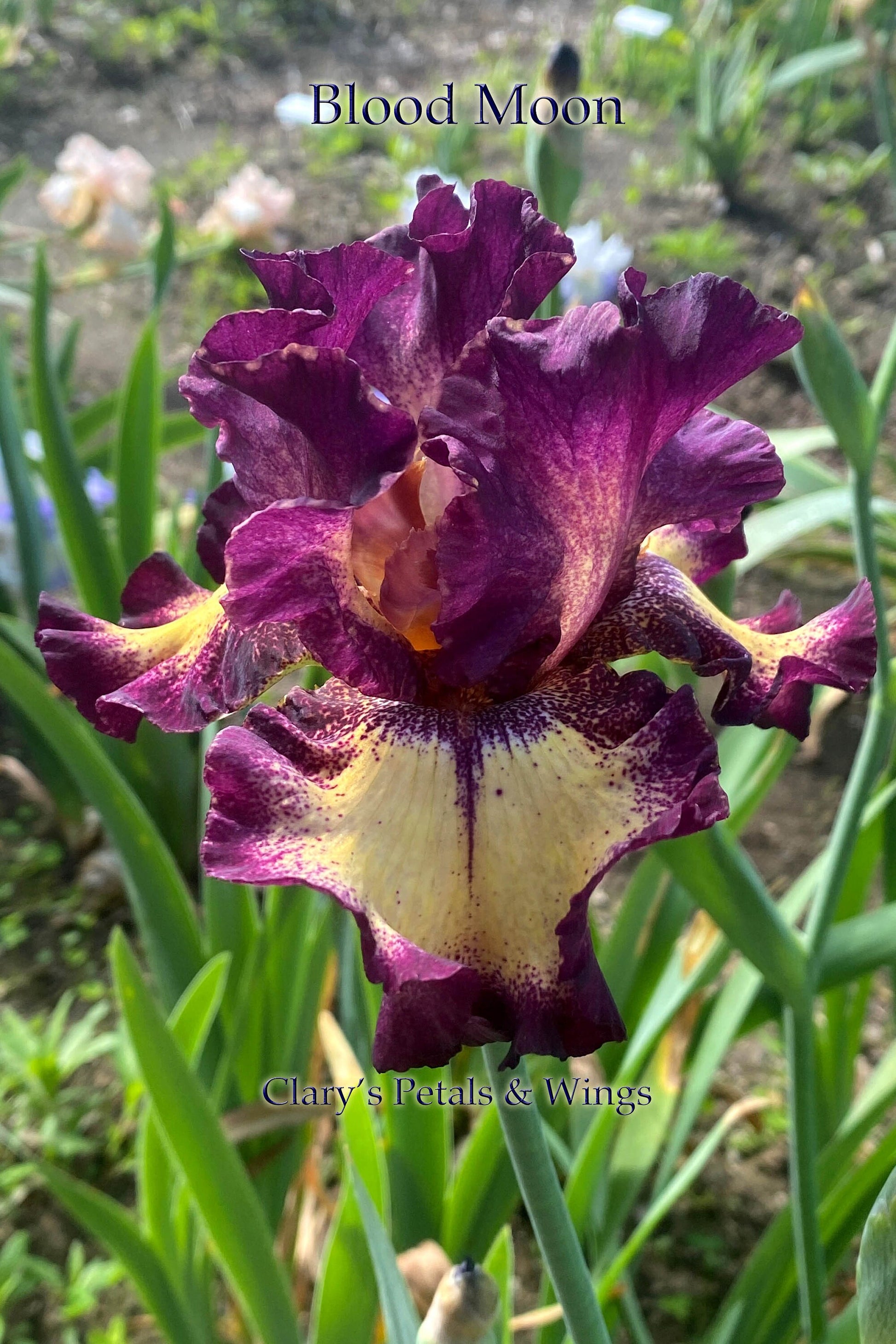 This offspring of Dykes Medal Winner Drama Queen and Sing A Song, possesses fantastic garden value. Invigorating the expansive, creamy falls is a red-burgundy plicata border. Stylish standards are finished in a uniform burgundy, save for infusions of yellow at the base of the midribs. Wildly ruffled falls contribute to the powerful luminescence of this dulcet plicata. Grows to 38 inches tall and blooms mid to late season.