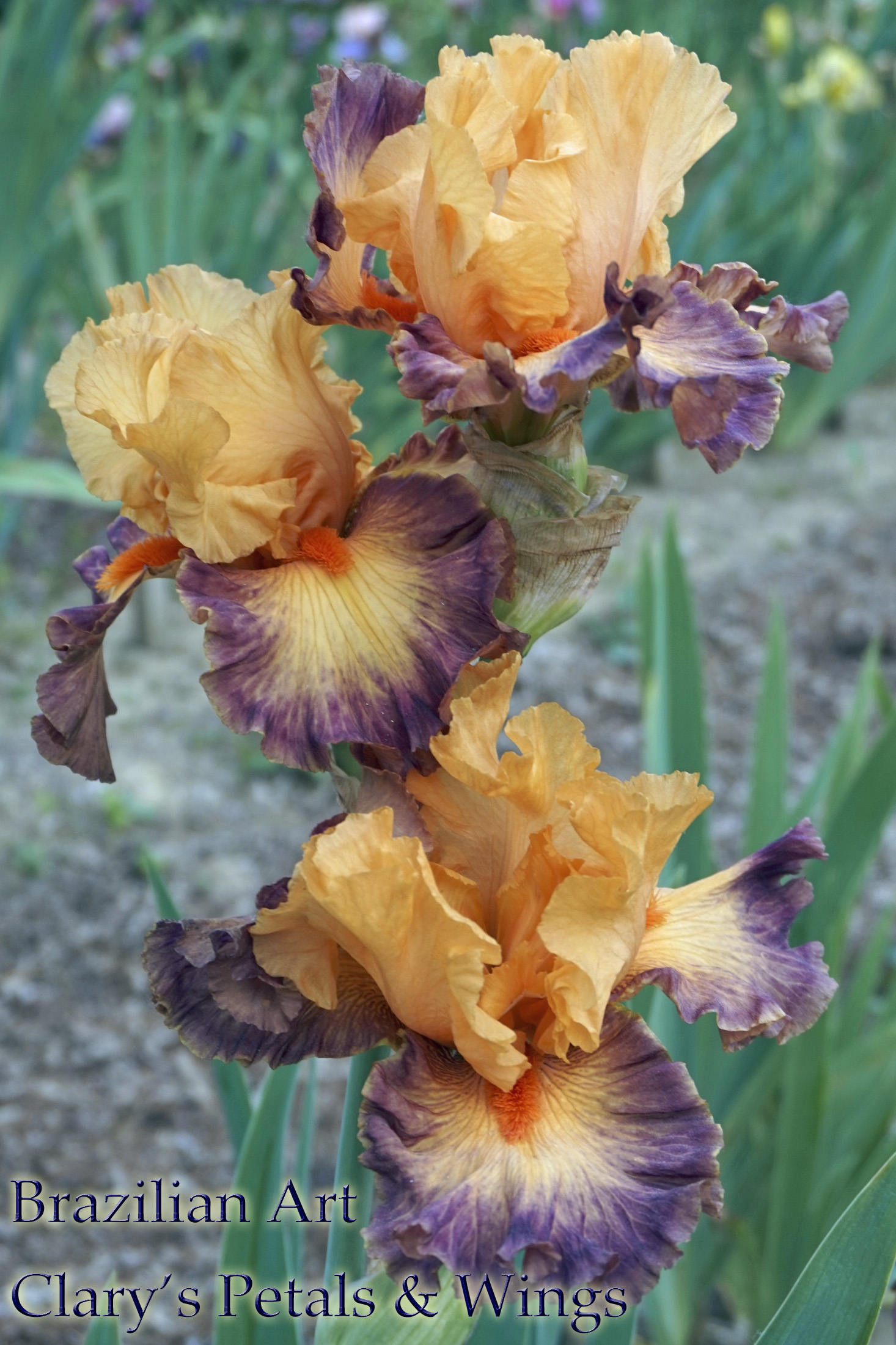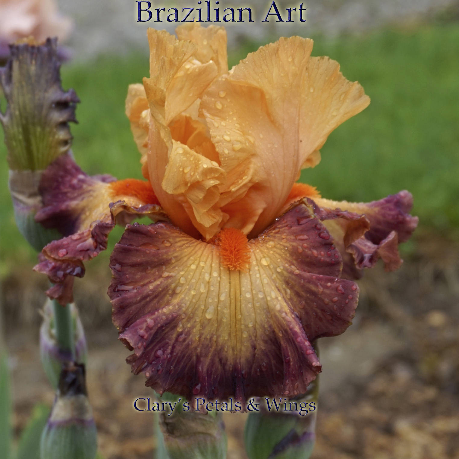Its distinctive colors of apricot and wine are crowned with vibrant orange beards. Its colors are like a magnet that will draw and hold your attention!