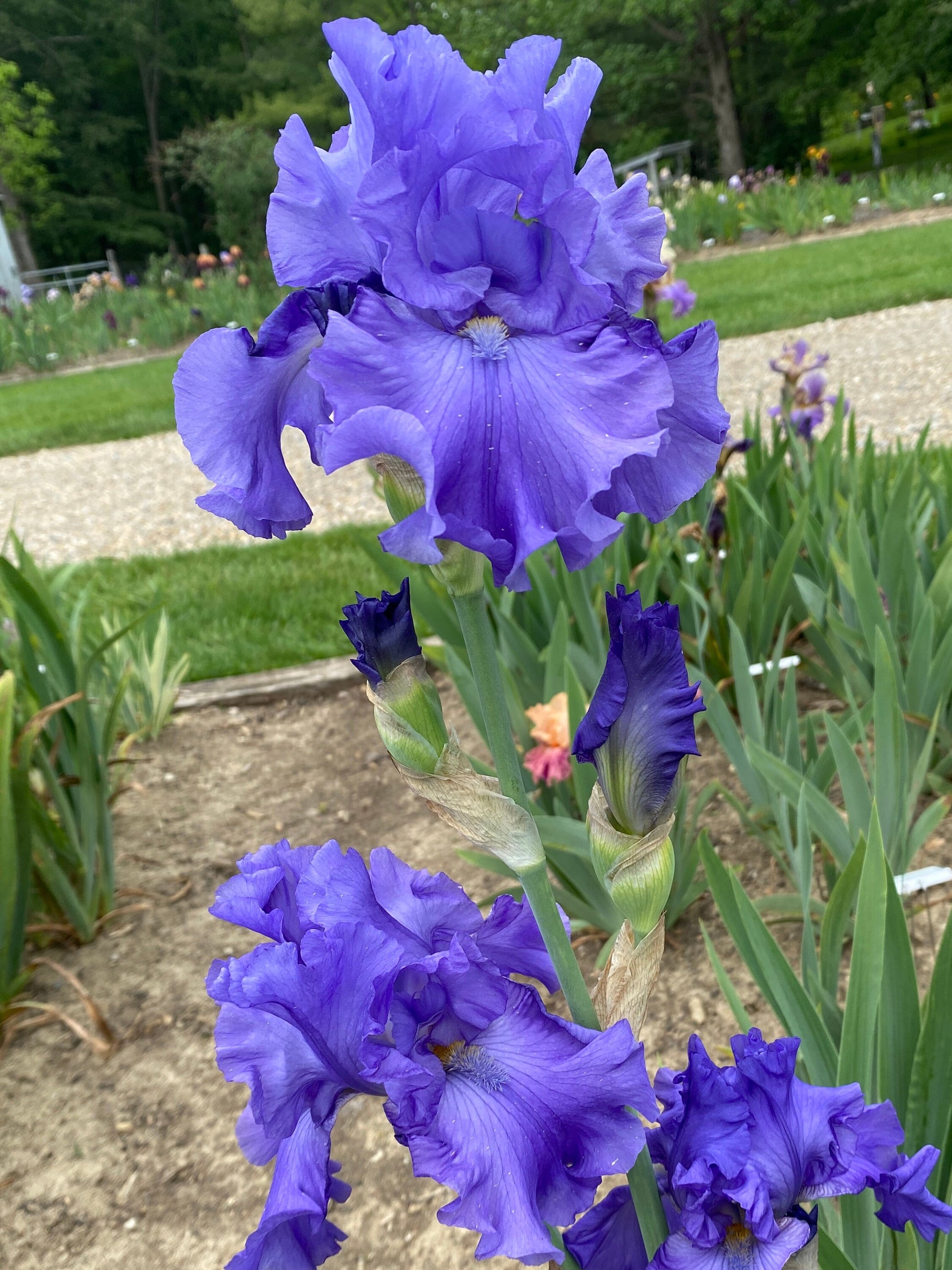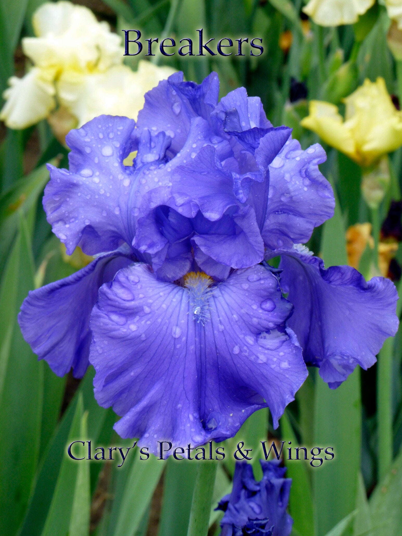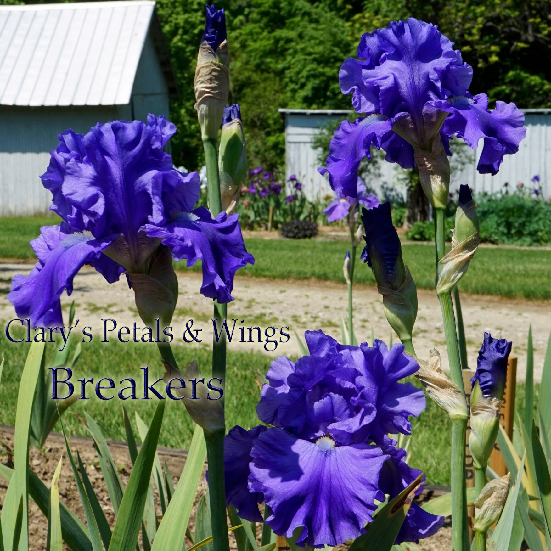 Here is a bubbly and effervescent Iris whose undulating petals create a remarkable billowing effect. The superb violet/blue color is applied with clean uniformity. Huge-sized flowers are displayed on four-branched stems with 8-10 buds. 37" tall. Midseason AND Rebloom