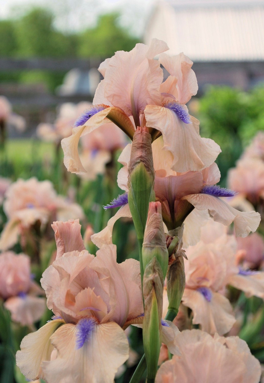 Iris rhizomes are best divided and transplanted after the plants finish blooming and have enough time to store nutrition in their roots. July through September is the best time to dig them up in Ohio. All Iris are grown on my farm and shipped from my home, bareroot with foliage and roots attached.
