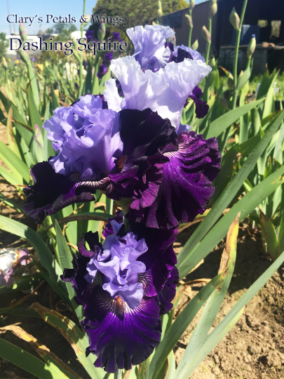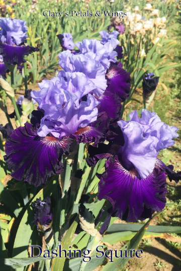 A classic neglecta with icy lilac blue standards. Falls are deep rich violet with a neat halo of white around the beards and violet lines running through the white area. Very tidy. Beards are muted golden apricot over white. Huge full globular blooms. Show stems and a fine grower. Fertile. Slight sweet fragrance.