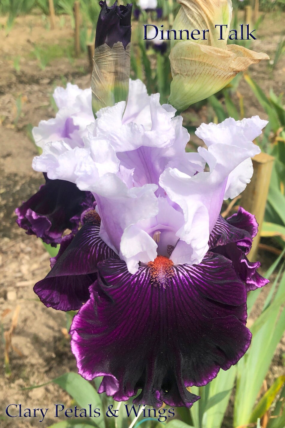 Pastel lavender standards, rich red violet falls with texture veining. Good spikes and a strong grower. Grows to 40" and blooms mid season.