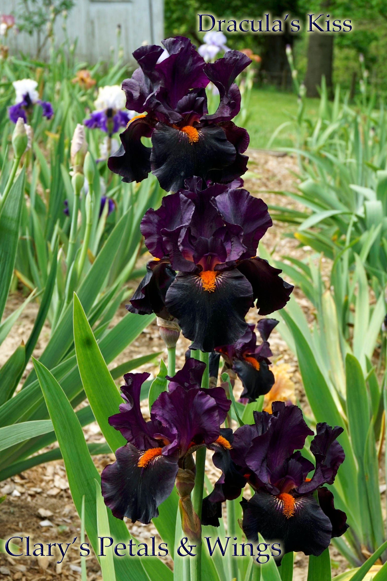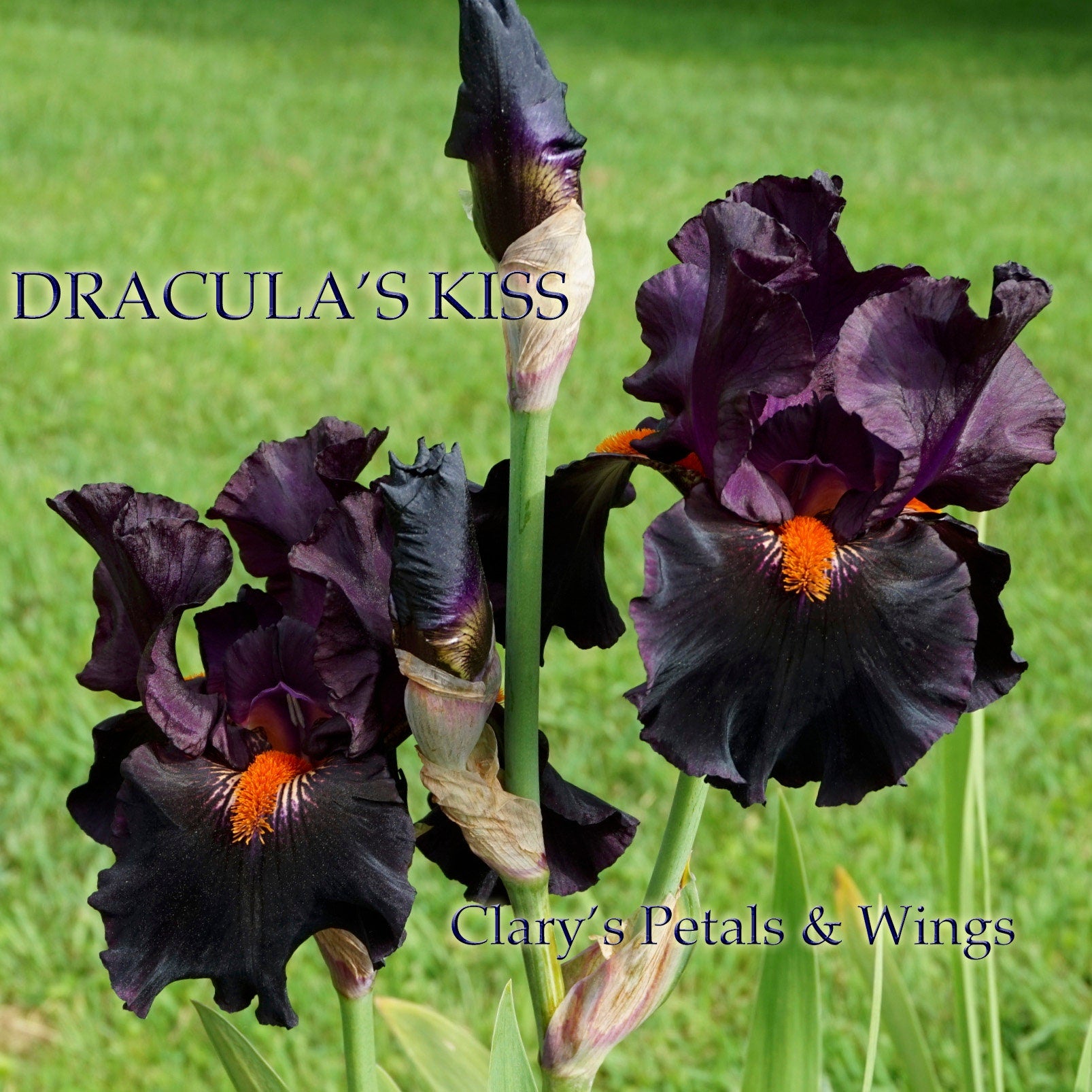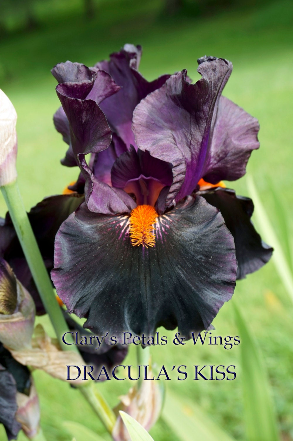 This beauty is a sell out every year! It's a prune/purple that darkens to a black/purple. Beards are huge and bright tangerine. A garden standout, vigorous grower and it produces 9-12 buds per stalk on a four branched stem. Grows to 36" and blooms mid to late season.