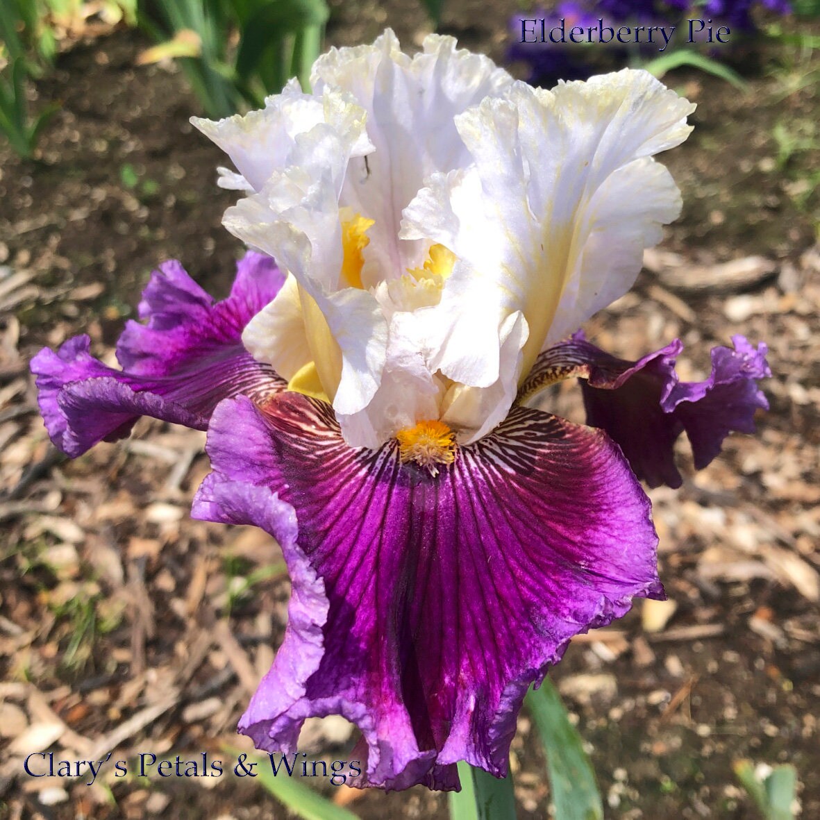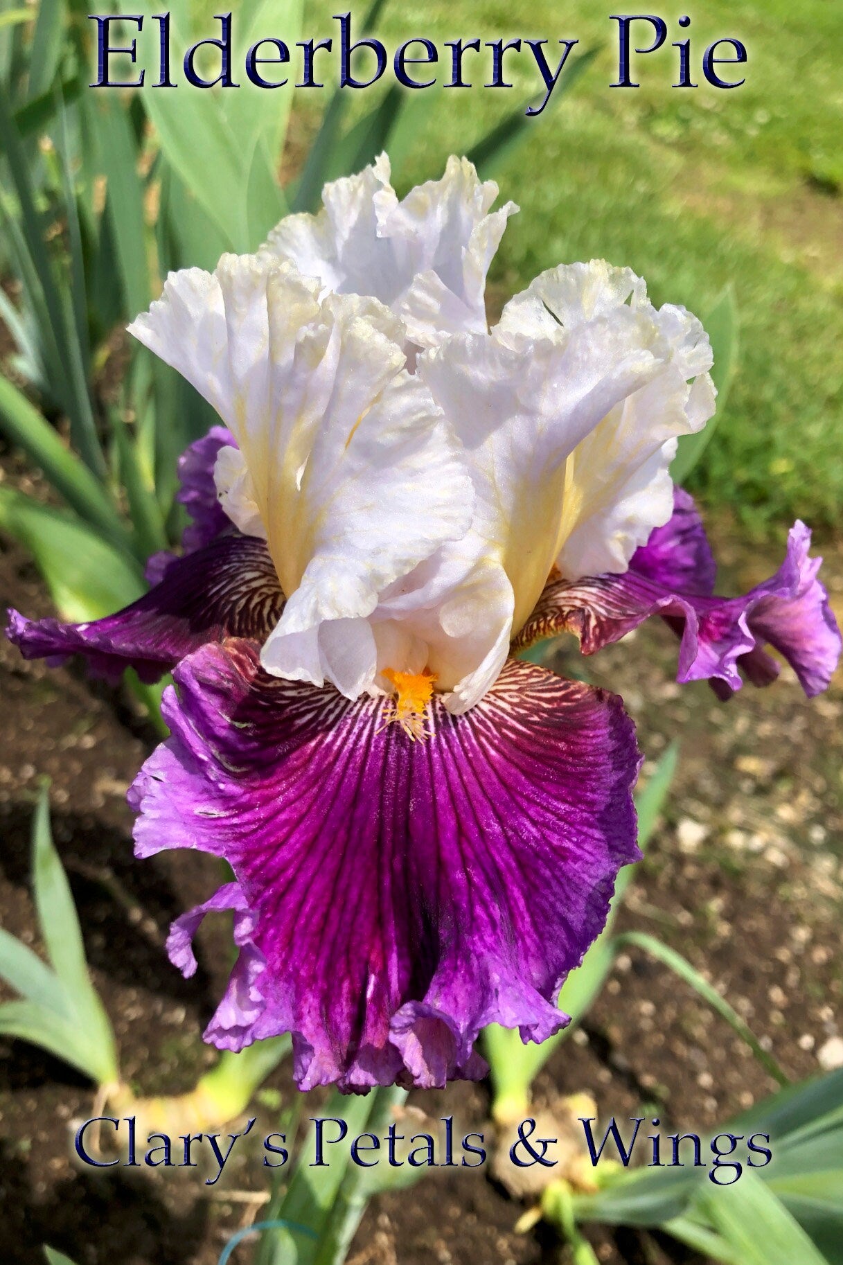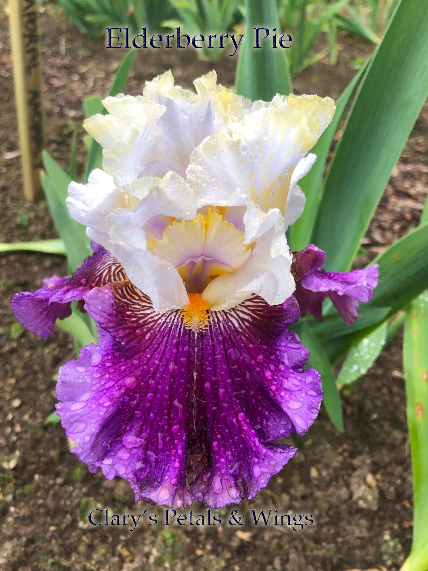 So beautiful... Standards are cream, veined and edged yellow. Style arms are cream. Falls are red-violet, veined darker and lighter at the edges. Beards are yellow. Blooms early to late season and grows to 38 inches tall.