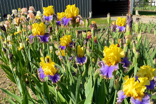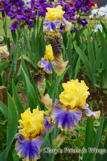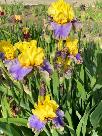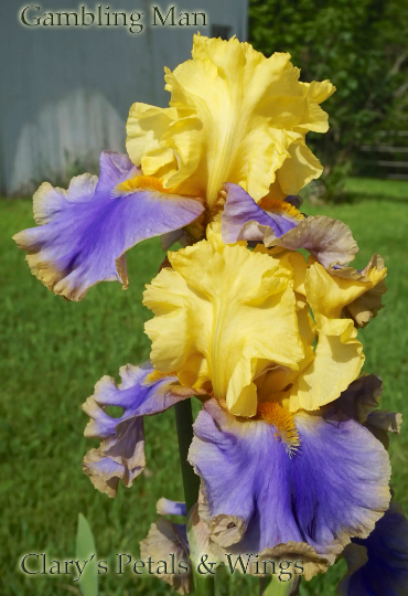 Chrome yellow standards with columbine blue semi flared falls. Fall edges pale to show a blended beige rim. Sturdy well branched and good growth. This one's a sure bet! Warm, inviting and it’s fragrant.   Grows to 38" and blooms mid to late season.
