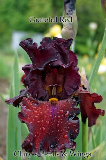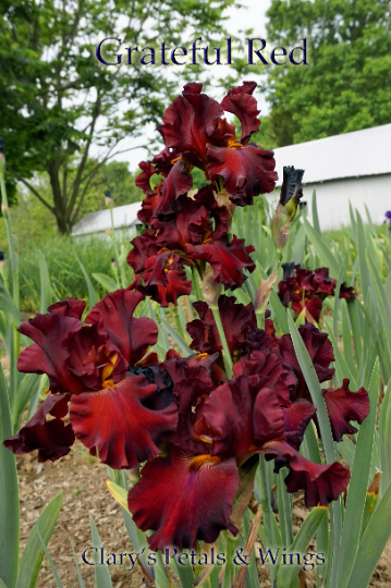 It's ruby red tones have are refreshing coming from the maroon-brown side of the color spectrum. The exoctic ruffled form of this compact flower is perfect! This vivacious iris bears 3 to 4 branches with as many as 8 buds each. Grows to 36” and blooms EARLY TO MID season.