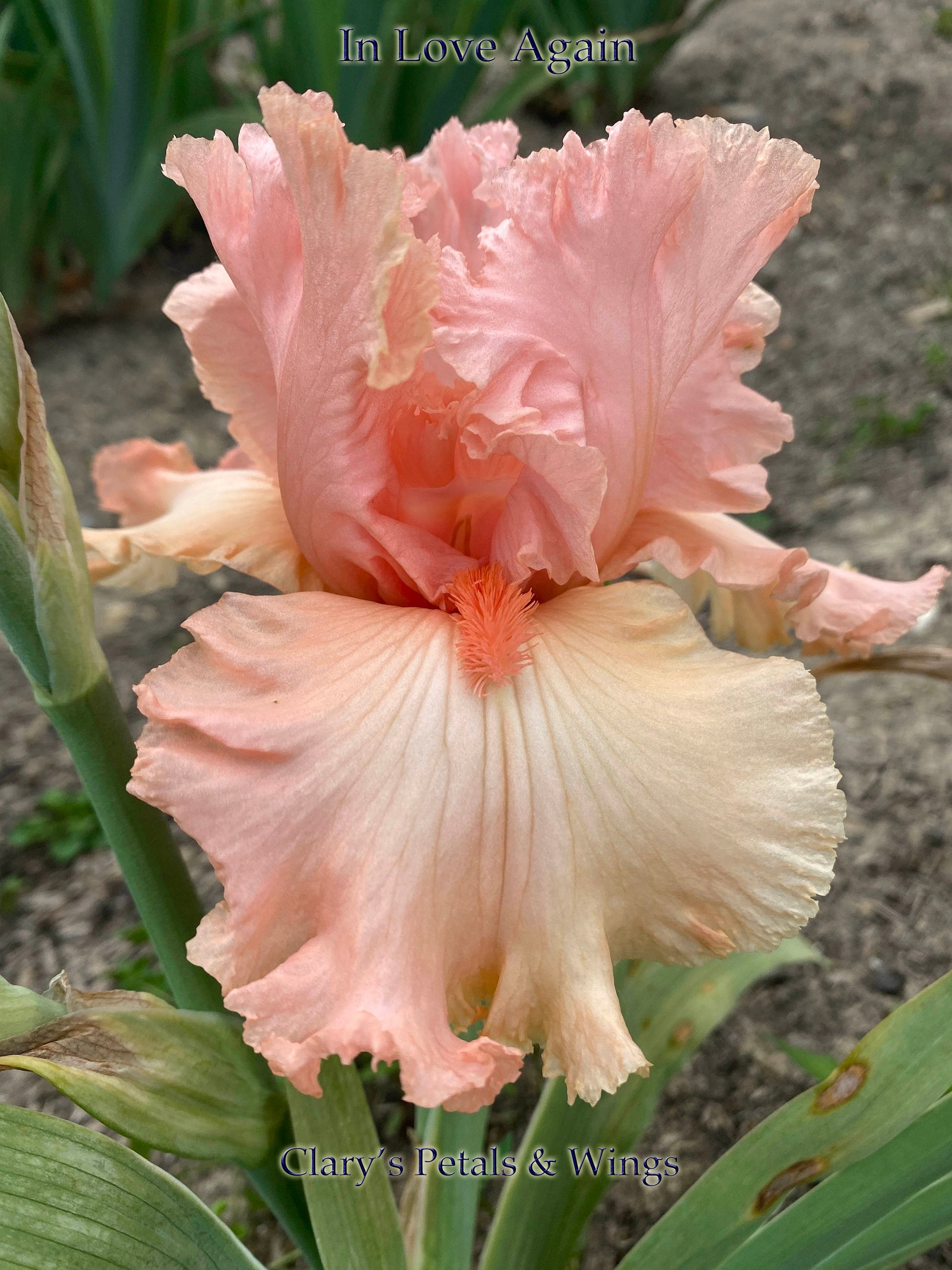 Rich pink with cream undertoning, pinkish red beards. Good garden color. Grows to 34 inches tall and blooms mid to late season.
