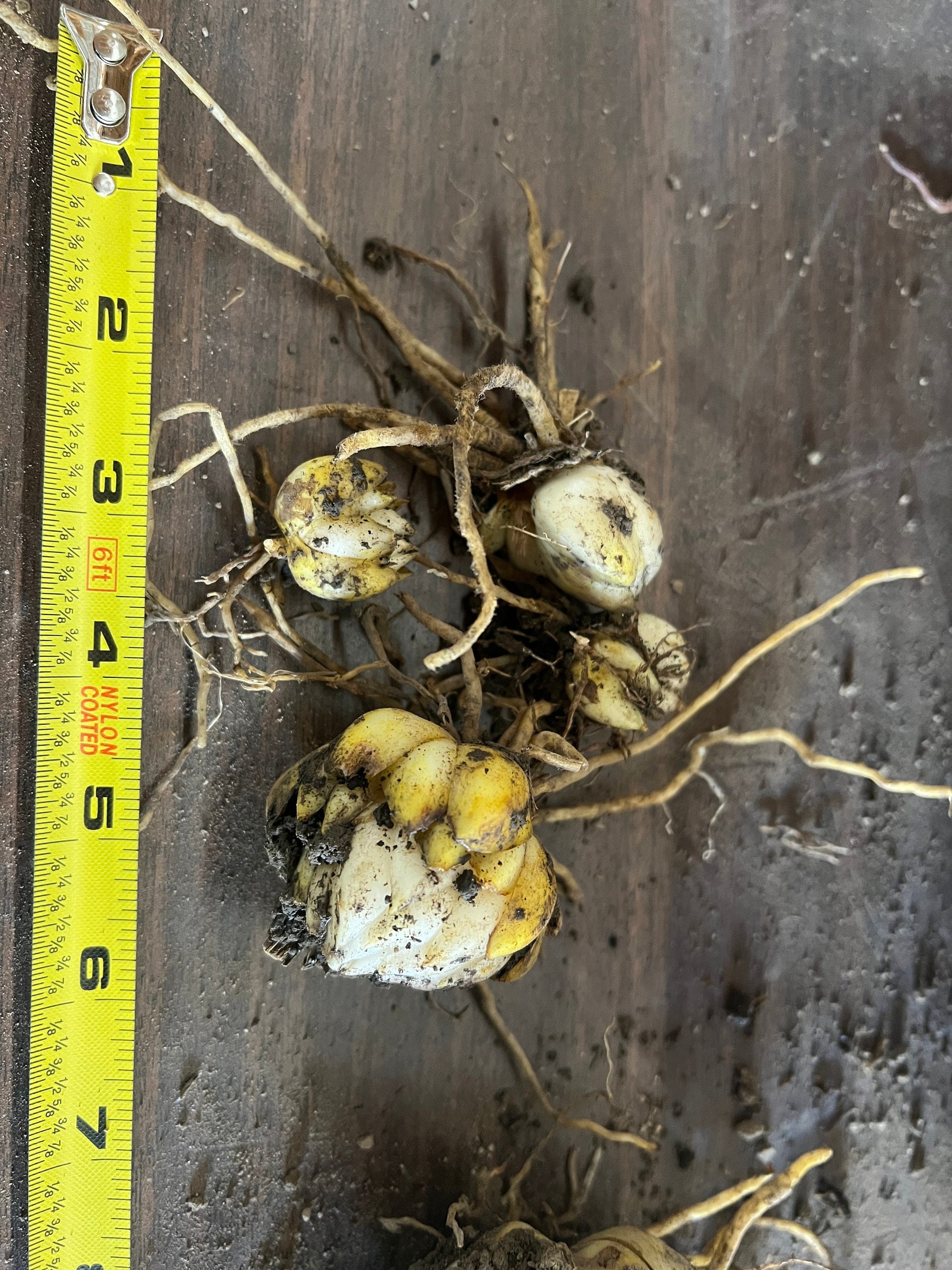 Courier Lily features bold creamy white trumpet-shaped flowers with buttery yellow overtones and a yellow reverse at the ends of the stems in early summer. The flowers are excellent for cutting. Its narrow leaves remain green in color throughout the season.