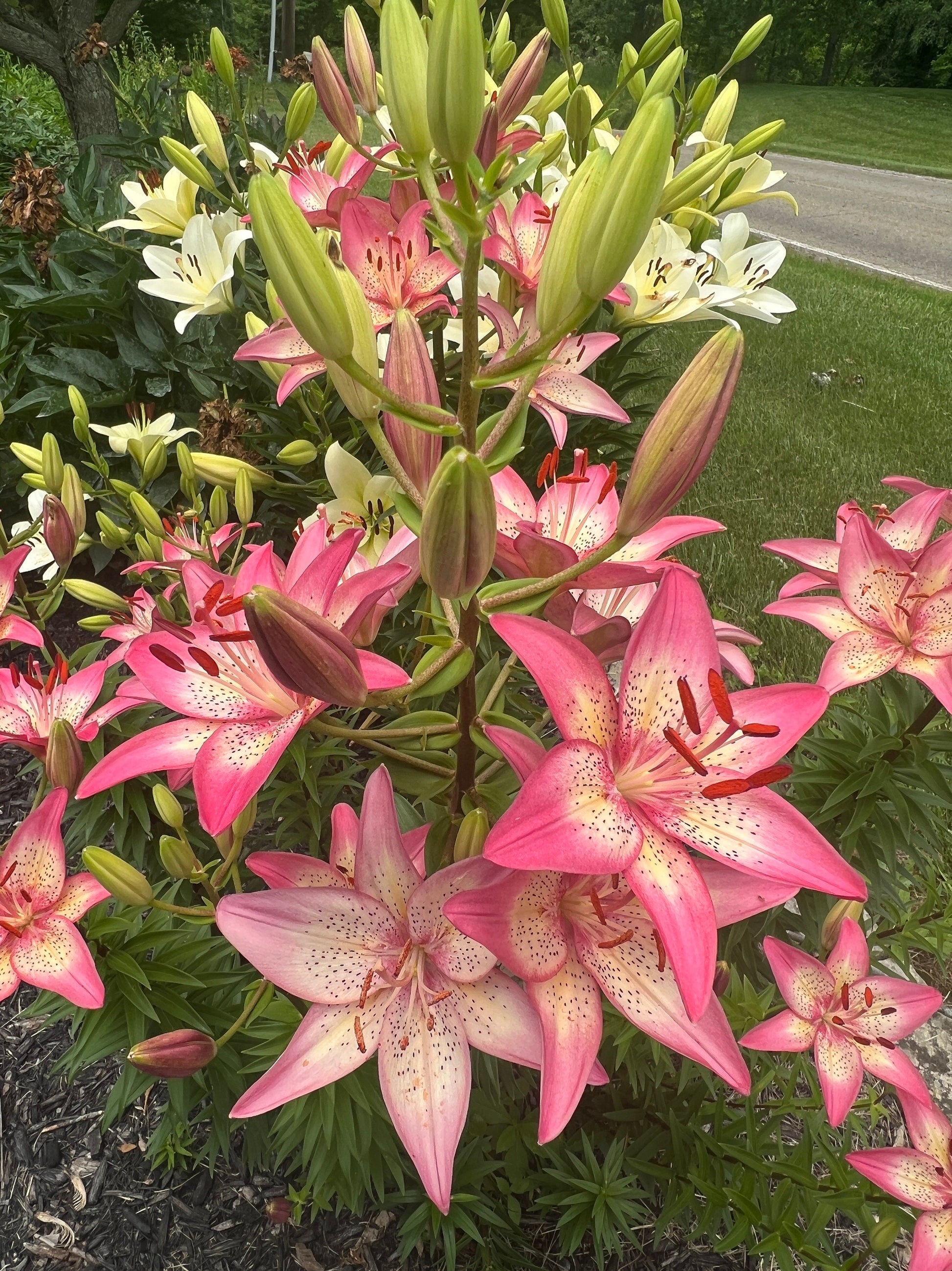A bright, uniquely-colored Asiatic Lily, 'Trogon' lends beauty and grace to the summer landscape. This easy-to-grow lily is dependable and cold hardy, perfoming well in most sunny gardens. 'Trogon' Lily's spectacular flowers attract butterflies throughout the extended bloom season, and are lovely and long-lasting in a vase. Noted for its early blooms. (Lilium)