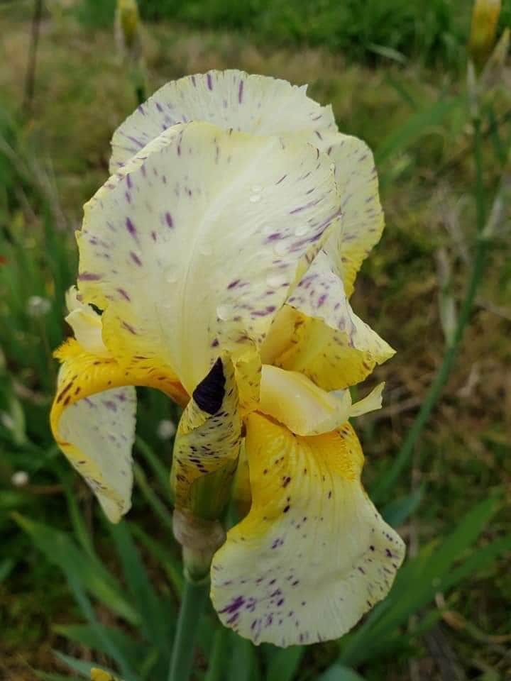 This unknown variety has been traded around Minnesota gardens since at least the 1970s with little knowledge of its origins or name. Minnesota iris breeder Jack Worel gave it a proper moniker in 2003 when he registered it, aptly, as 'Minnesota Mixed-Up Kid'. White to light cream flowers are splattered with irregular purple and yellow streaks and dots. Eccentric and eclectic! Grows to 25" inches tall and blooms early to mid season.