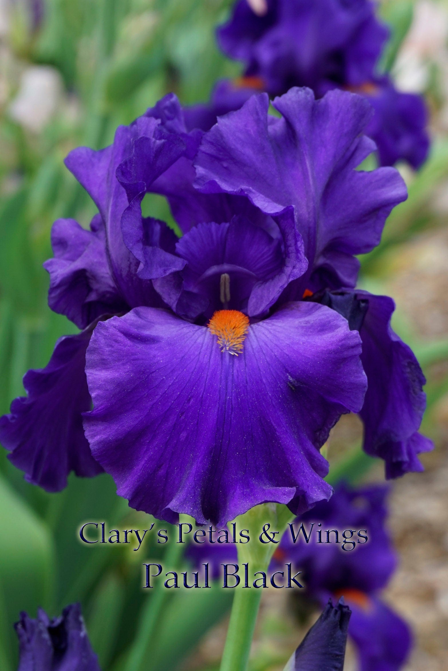 This MULTI AWARD WINNING, stunning dark purple self demonstrates all around excellence.Tall show bench stems bear 11 to 12 triple-socketed buds. It's large flowers have excellant ruffeled form and are smoothly saturated in dark purple. The dark orange beards create a fascinating color combination. Looks blue in the early morning or shade. A pronounced spicy fragrance enhances it's appeal. Mid to Late season bloom 42"