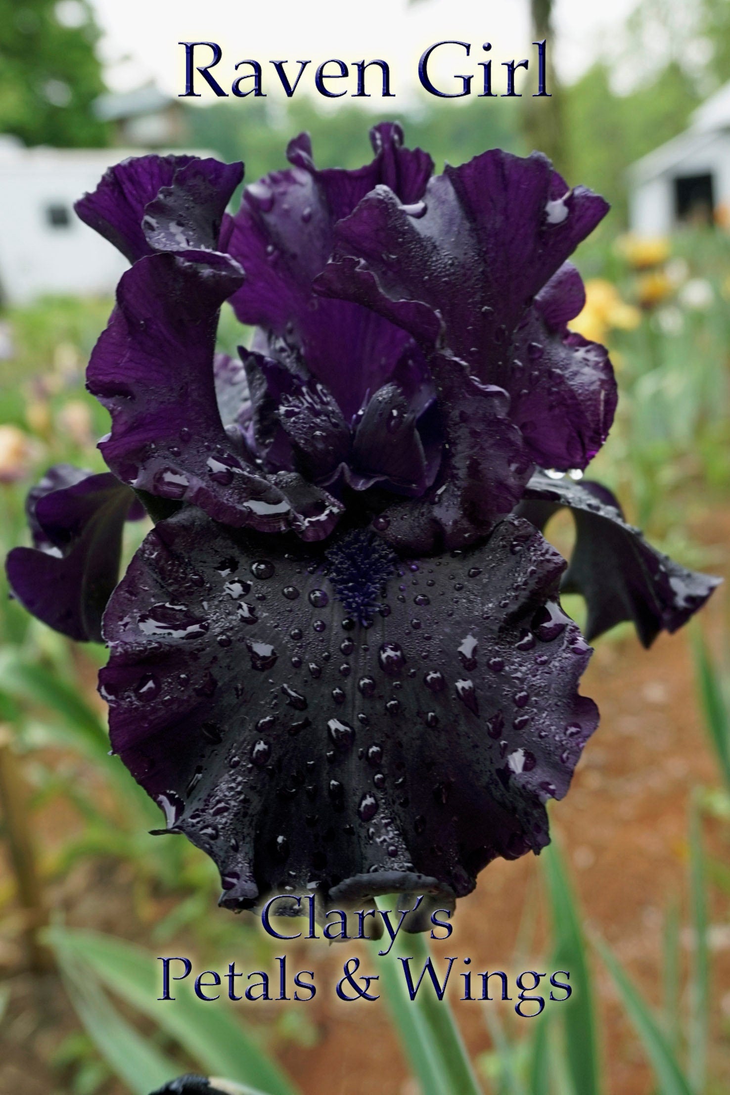 This beauty has bouncy ruffles and will extend your growing season! Depending on the lighting you can see blue or purple undertones but it's one of the darkest black iris I have ever seen.  Grows to 39" tall, Mid to late season bloom.