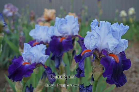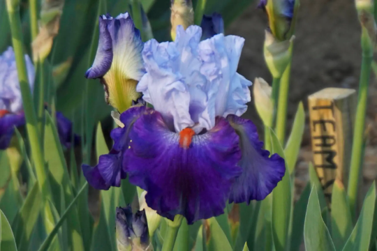 Upright standards are clear light lavender-blue, falls are vibrant royal purple. The small white spray pattern at the centers of the falls draws attention to the bright orange beards. A sweet fragrance enhances the appeal. Quick to grow and multiply. Grows to 36" and blooms early to mid season.