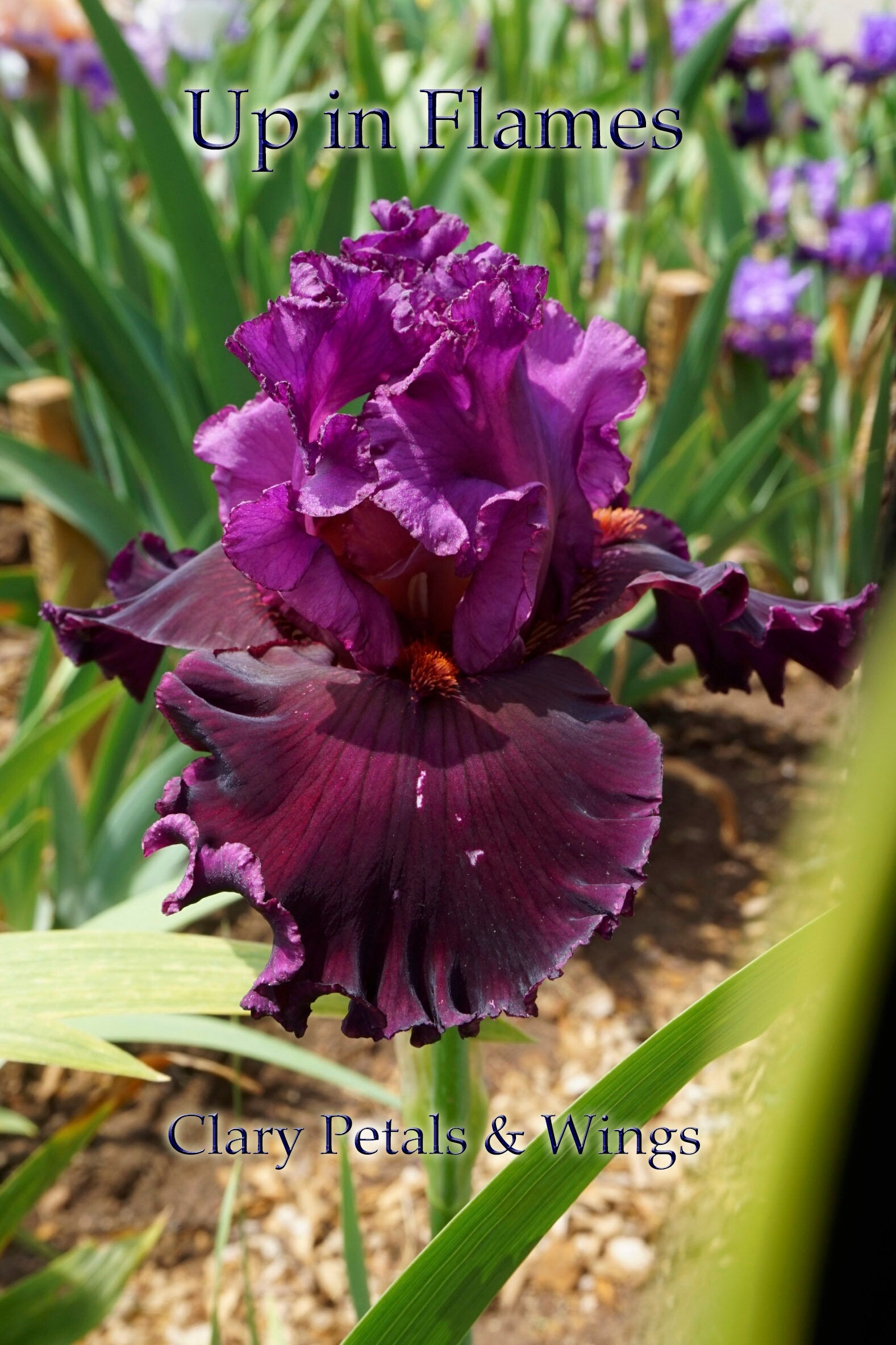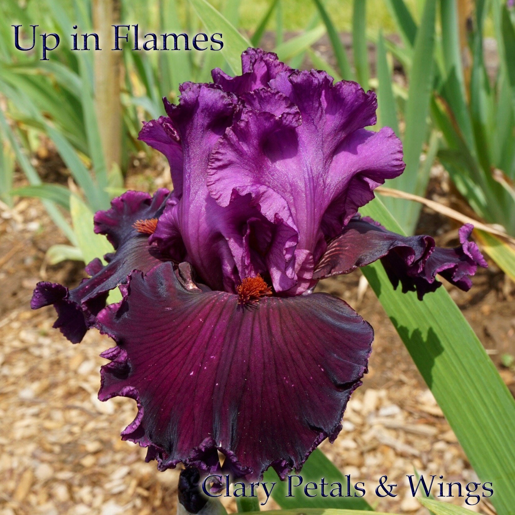 Temperatures rise and hot embers begin to glow until it goes Up in Flames. It’s hot, hot, hot! Highly ruffled and laced standards and narrow rims around falls are hot pinkish rose. Plush, velvety falls are dark garnet. Smoldering orange-red beards are highlighted by subdued rose white veins surrounding them. Nicely branched stalks with about 7 buds.