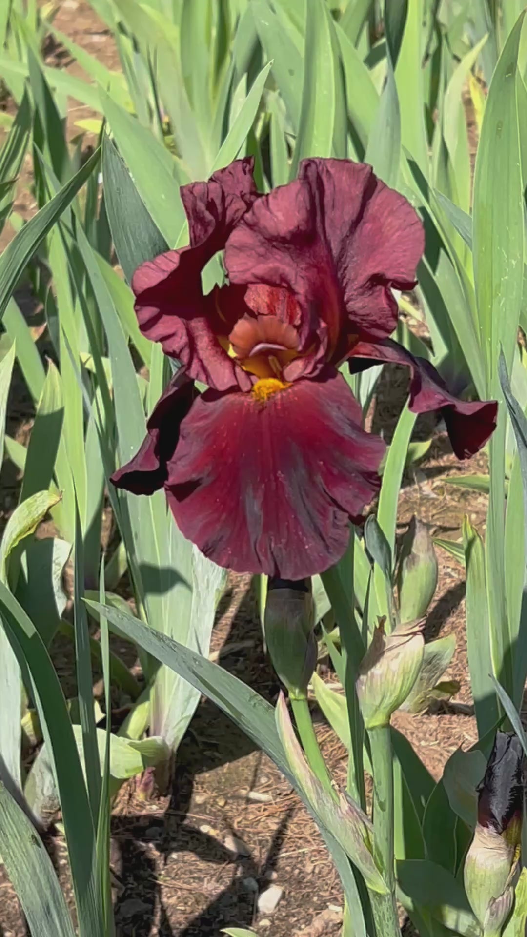 Tall strong stems produce 4 branches with 11-13 buds. Smooth non-fading red tones and bright yellow beards that add an extra sparkle. Grows to 37”, Early to Mid bloom season.
