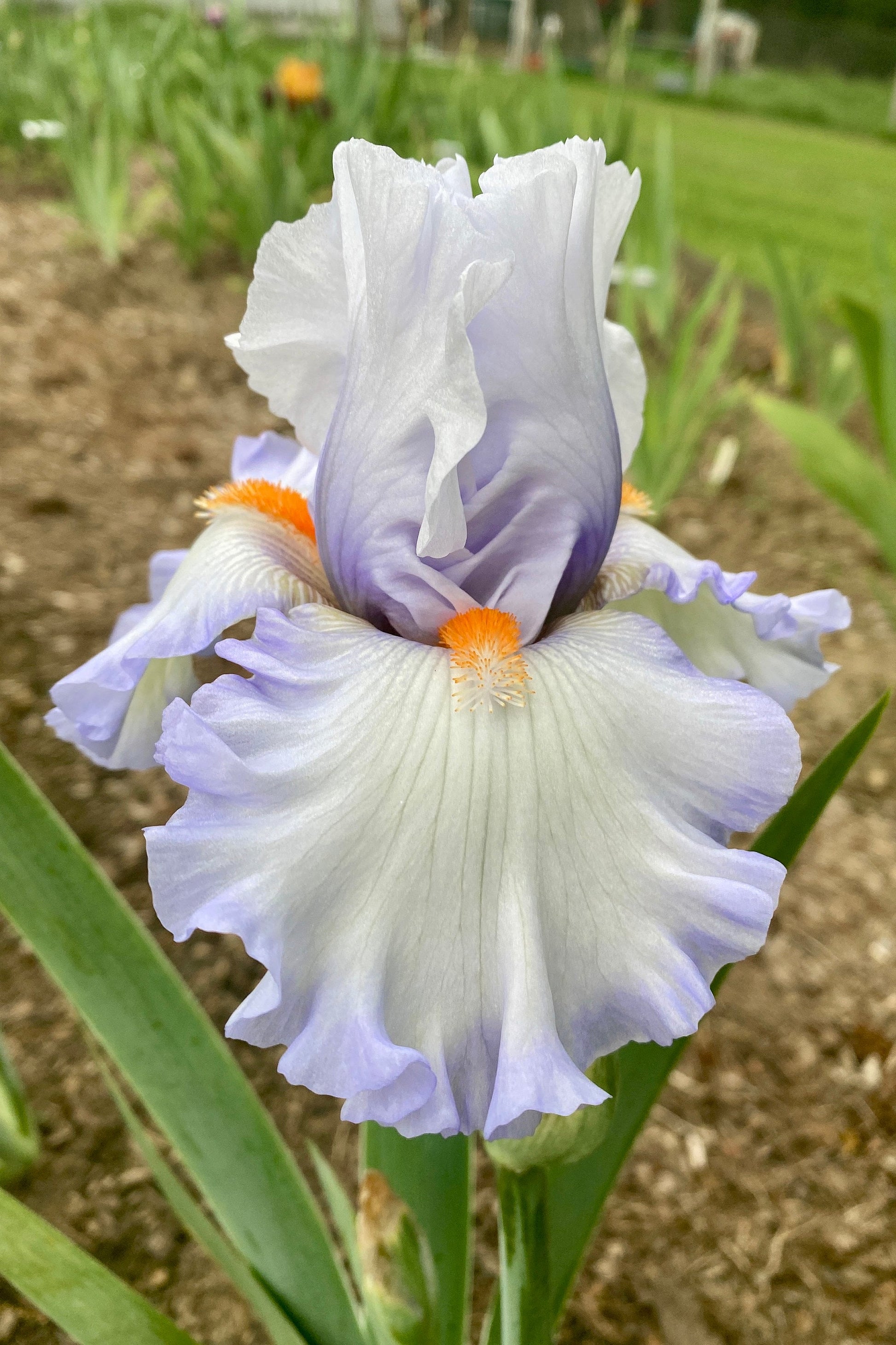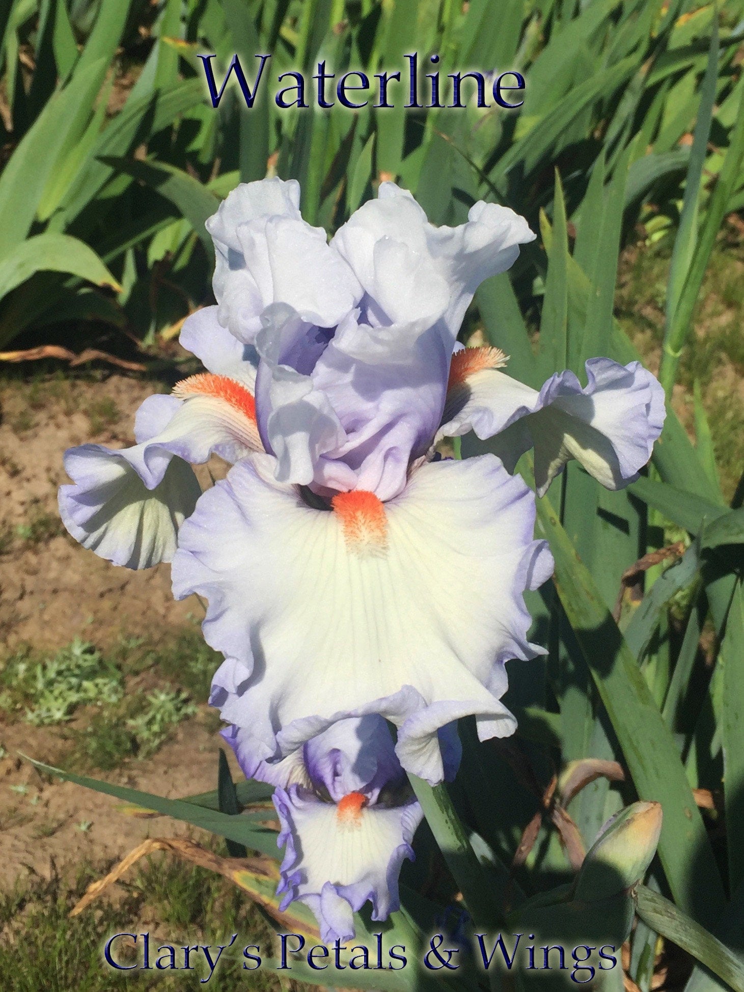 As the eloquent hybridizer writes, “Ruffled, undulating form. Pale sky blue standards are reflected in paler, silvery blue falls with a darker marginal line. Pastel pulchritude.” Ethereal as a beautiful watercolor.  Early to mid season bloom and rebloom 37"